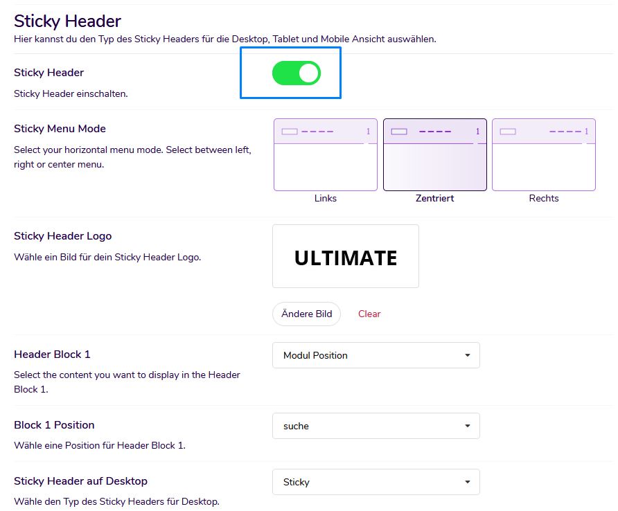 Fügen Sie Ihrer Joomla-Website mit einem Klick einen 2sticky" Header hinzu. Keine zusätzlichen Plugins erforderlich. Konfigurieren Sie es gemäß den Anforderungen Ihrer Website.